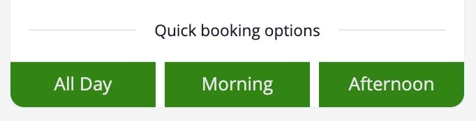 With half day bookings enabled users will see two quick book options of "Morning" and "Afternoon"