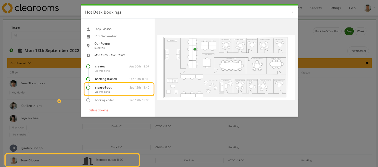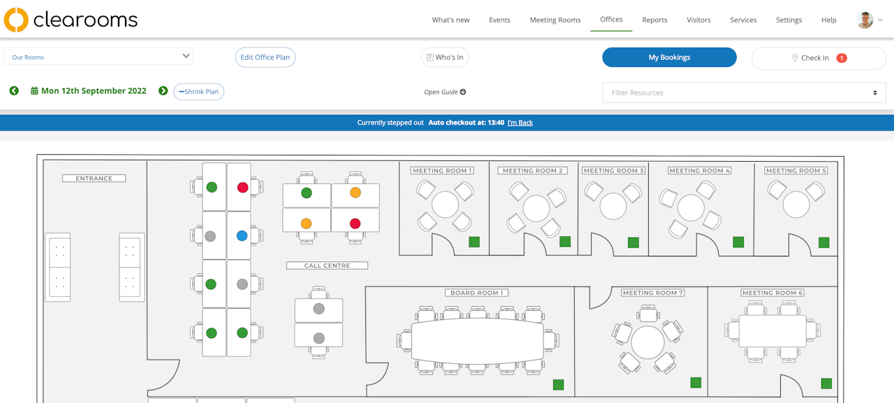 When enabled users can mark them selves temporarily out of the office without having to check out and re-book a space on return.